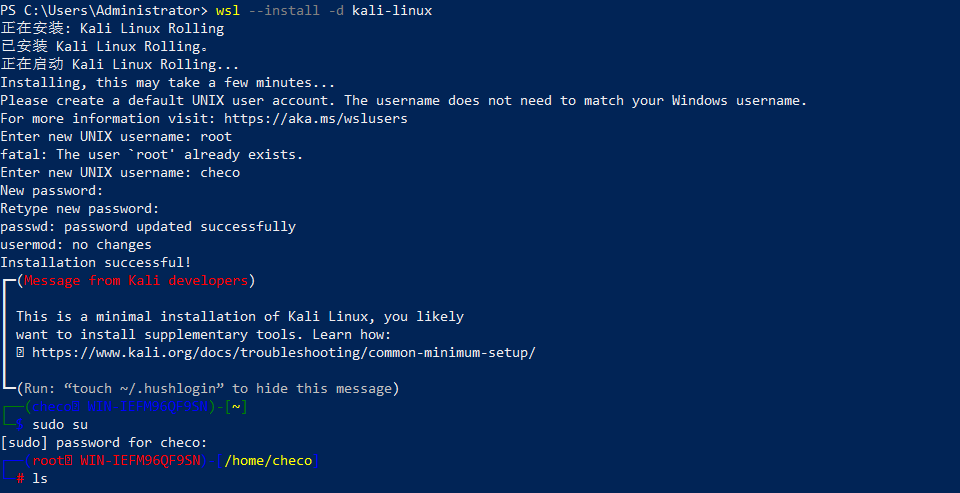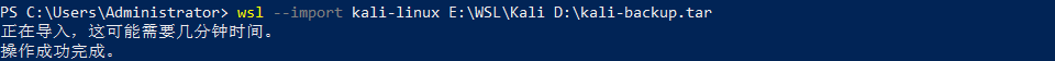 wsl --import kali-linux E:\WSL\Kali D:\kali-backup.tar